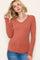 Elevate your everyday wardrobe with our Rust Fine Rib V-Neck Long Sleeve Top. Crafted from a soft, stretchy ribbed fabric, this top offers a flattering fit that hugs your silhouette comfortably. The rich rust color adds warmth and a touch of autumnal charm, perfect for layering or wearing alone. Featuring a classic V-neckline and long sleeves, it’s an effortless mix of casual and chic ideal for any occasion. Pair it with your favorite jeans or skirt for a polished yet relaxed look. Easy to style, easy to love—this versatile top is a must-have basic for your seasonal transition. Available in multiple sizes.