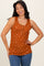 Rust Floral Print Ribbed Henley Sleeveless Top