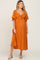 Rust Front Tie Ruffle Sleeve Maternity Midi Dress