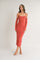 Rust Mesh Ruched Long Sleeve Midi Dress