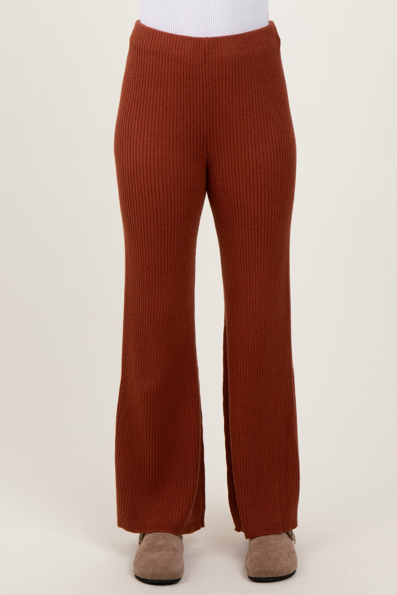 Step into cozy style with our Rust Ribbed Knit Flare Pants! Crafted from soft, ribbed knit fabric, these pants offer a comfortable fit that's perfect for lounging or casual outings. The rich rust color adds warmth and depth to your wardrobe, while the flattering flare silhouette balances comfort with trendy flair. Featuring a high waist and stretchy material, these pants hug your curves gently, creating an effortlessly chic look. Pair with a fitted top and boots for a stylish autumn outfit or layer with your favorite sweaters for ultimate comfort in cooler weather. Elevate your everyday essentials with these versatile flare pants!