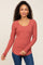 Rust Ribbed Scoop Neck Long Sleeve Top