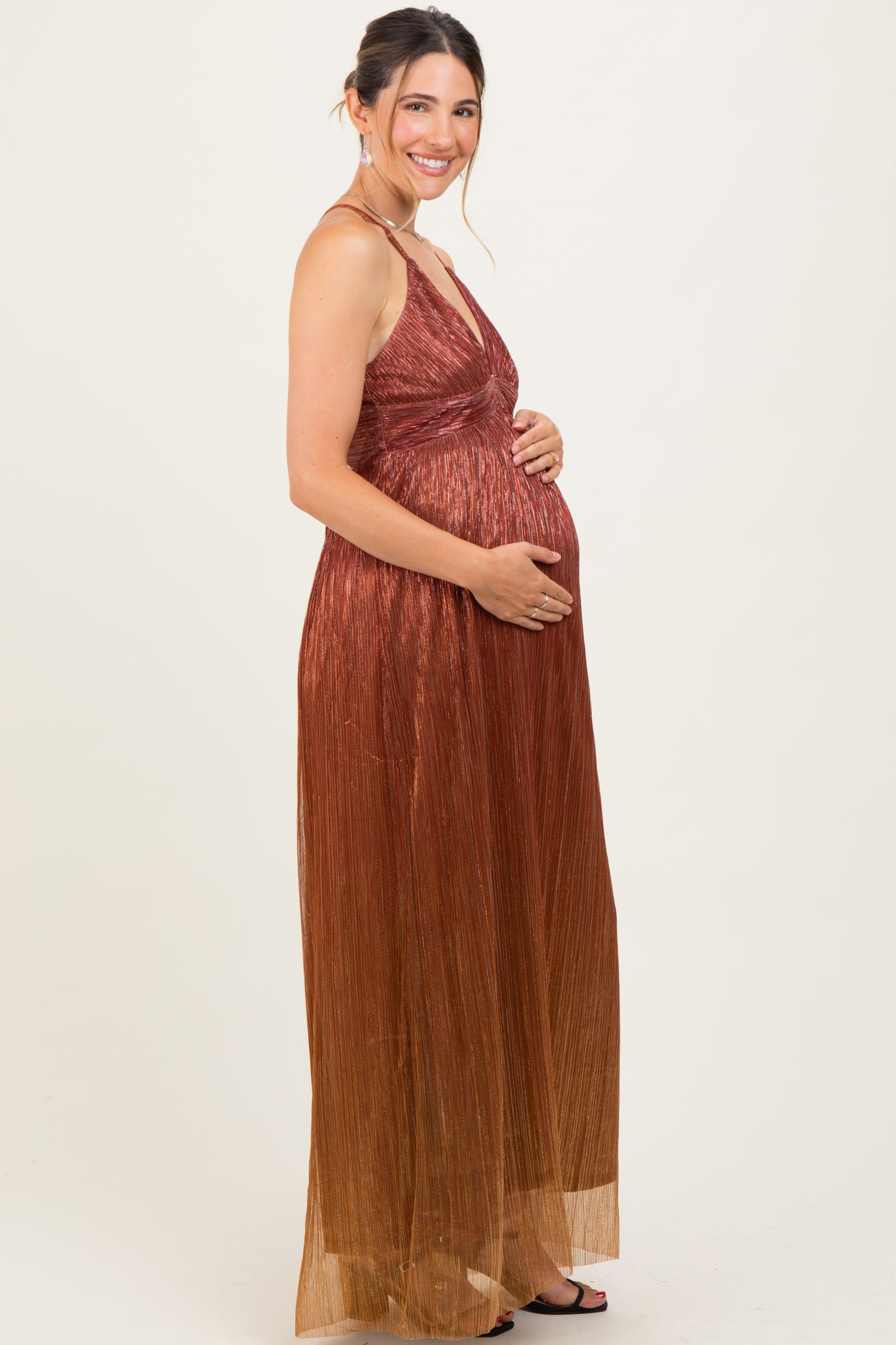 Rust Shimmer Open Tie Back Maternity Maxi Dress