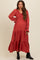 Rust Smocked Tiered Long Sleeve Maternity Maxi Dress