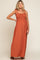 Rust Textured Smocked Shoulder Tie Maternity Maxi Dress