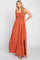 Rust Textured Smocked Shoulder Tie Maxi Dress