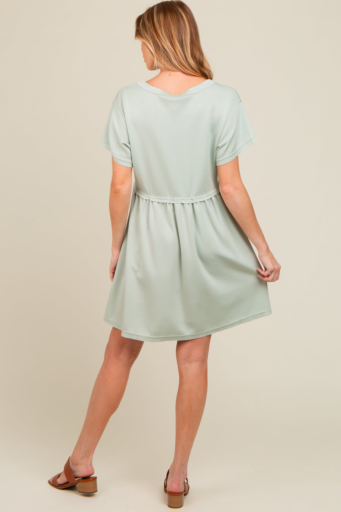 Sage Cut Edge Short Sleeve Maternity Dress