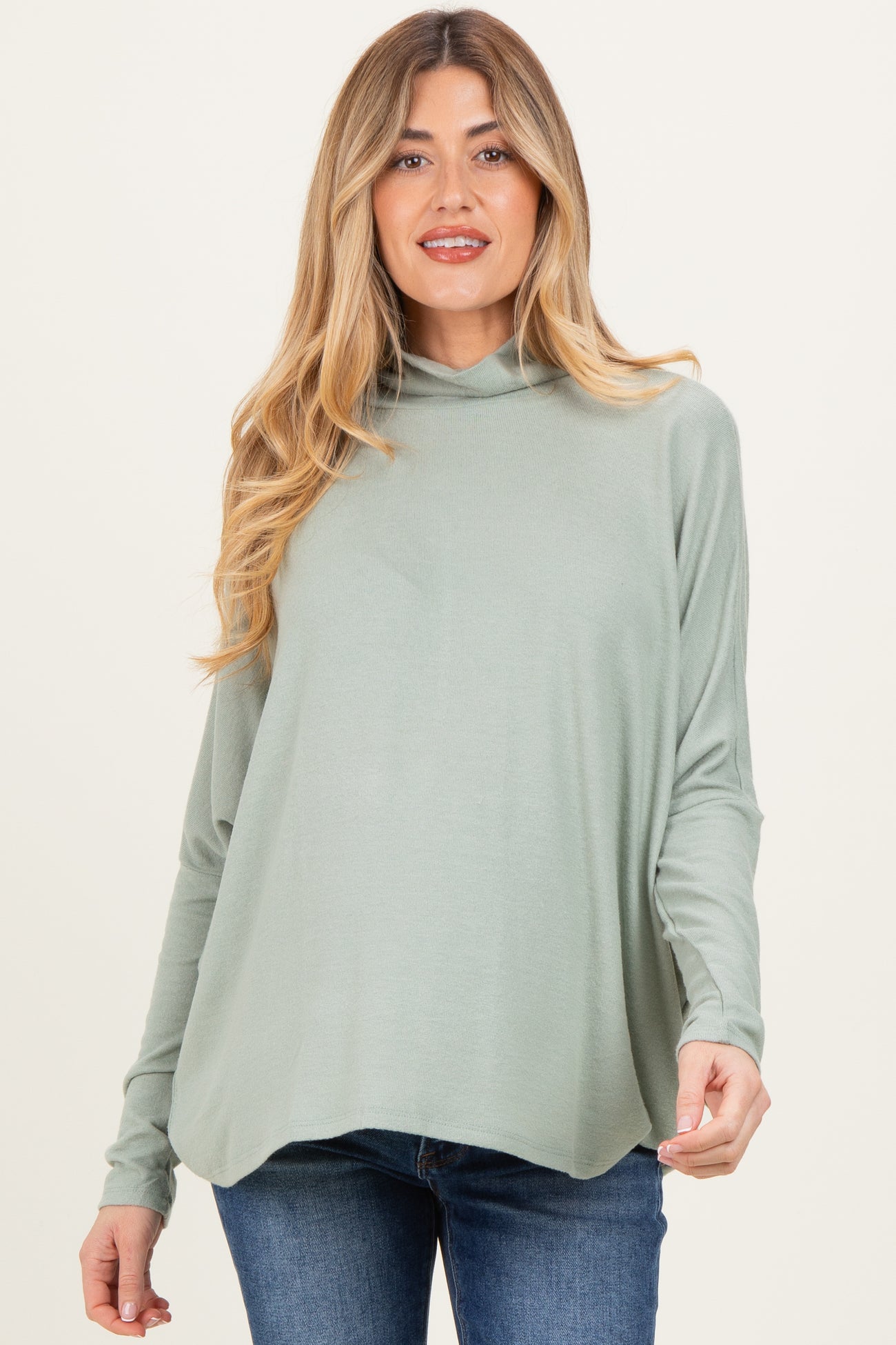Sage Draped Oversized Turtleneck Dolman Sleeve Maternity Top
