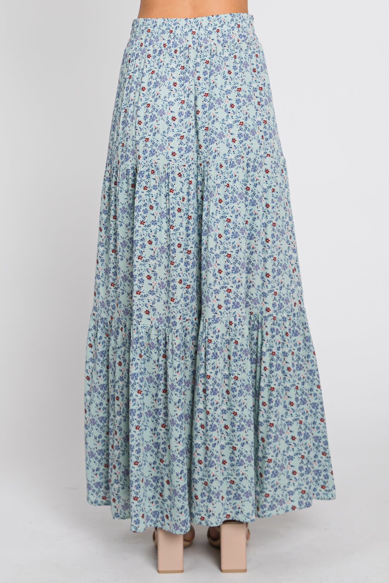 Sage Floral Tiered Maxi Skirt