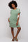 A French terry cloth dress featuring a rounded neckline, cuffed short sleeves, side pockets, and a rounded hem.