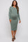 A solid hued maternity nursing dress featuring long sleeves, a self-tie adjustable top and a rounded neckline.