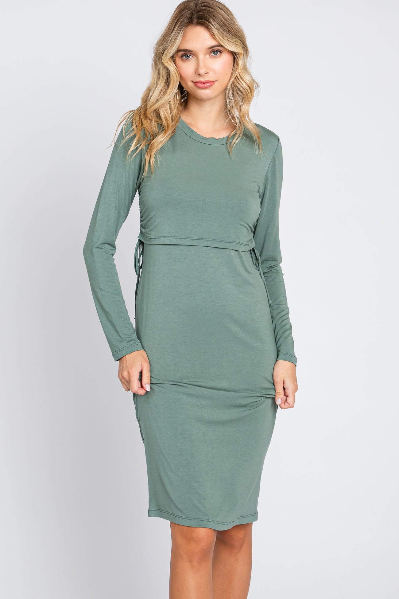 Sage Long Sleeve Nursing Dress