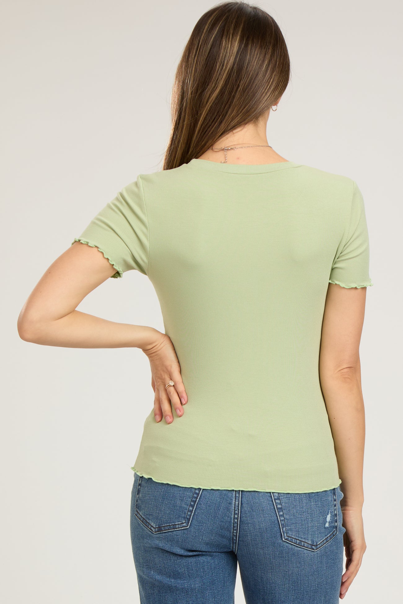 Sage Ribbed Fitted Lettuce Trim Maternity Top