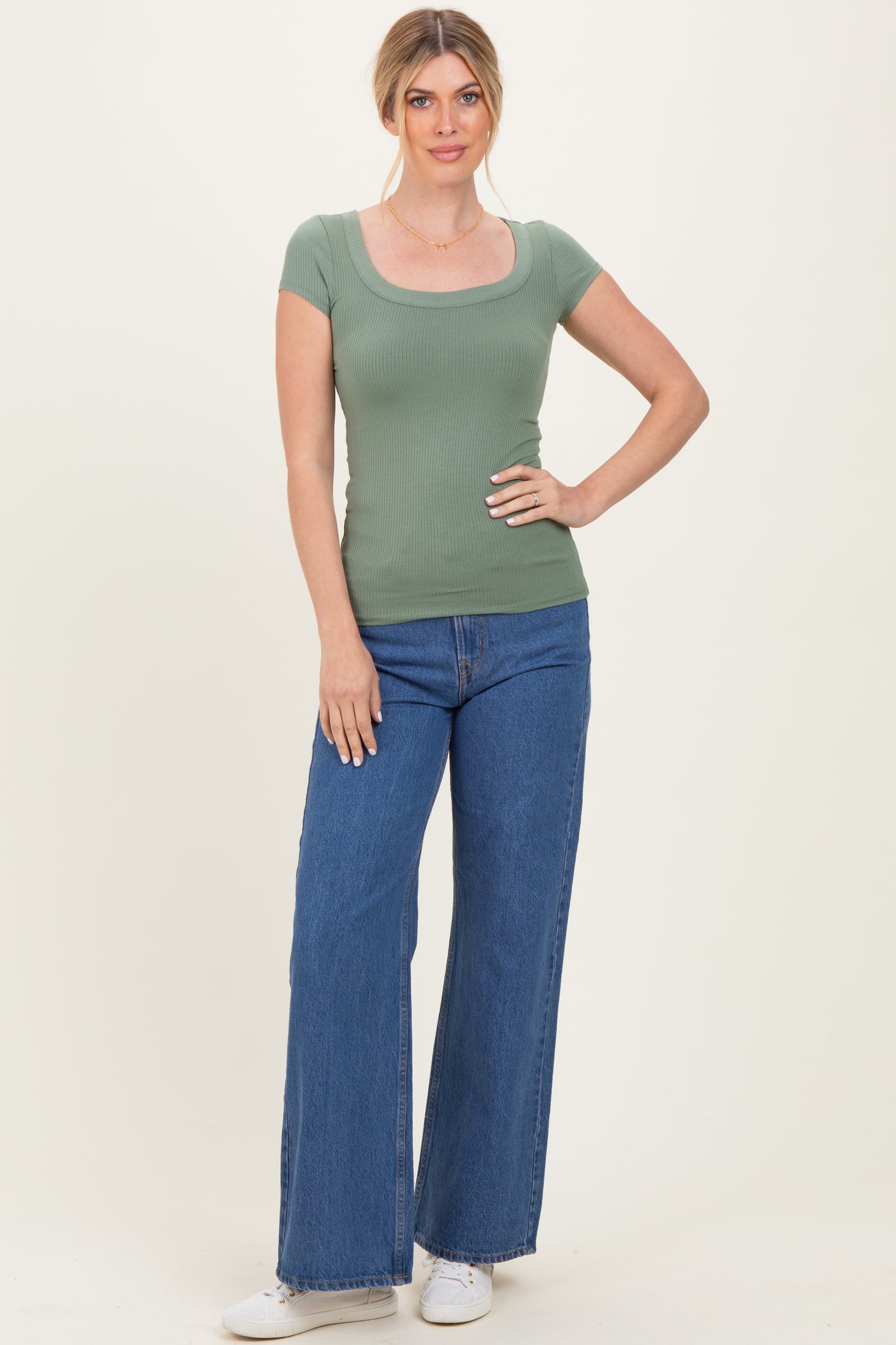 Sage Ribbed Rounded Square Neck Top