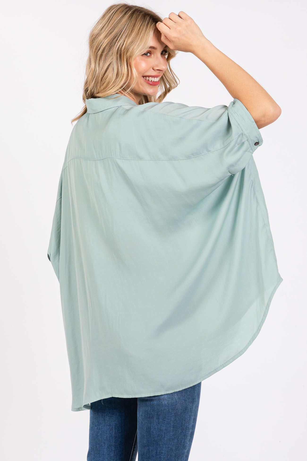 Sage Satin Oversized Shirt
