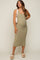 A sleeveless knit maternity midi dress featuring a square neckline.