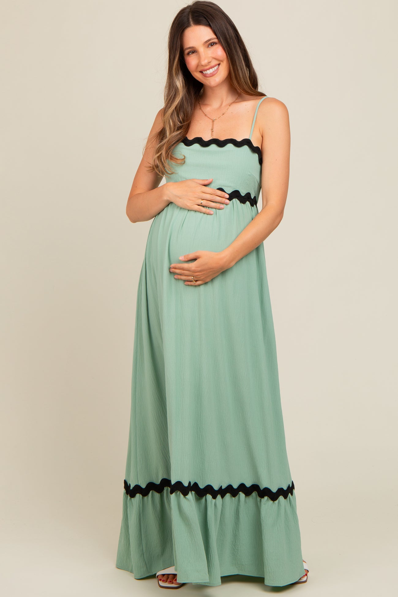 Sage Sleeveless ZigZag Accent Maternity Maxi Dress