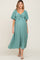 Sage Textured Dot Front Tie Ruffle Sleeve Maternity Midi Dress