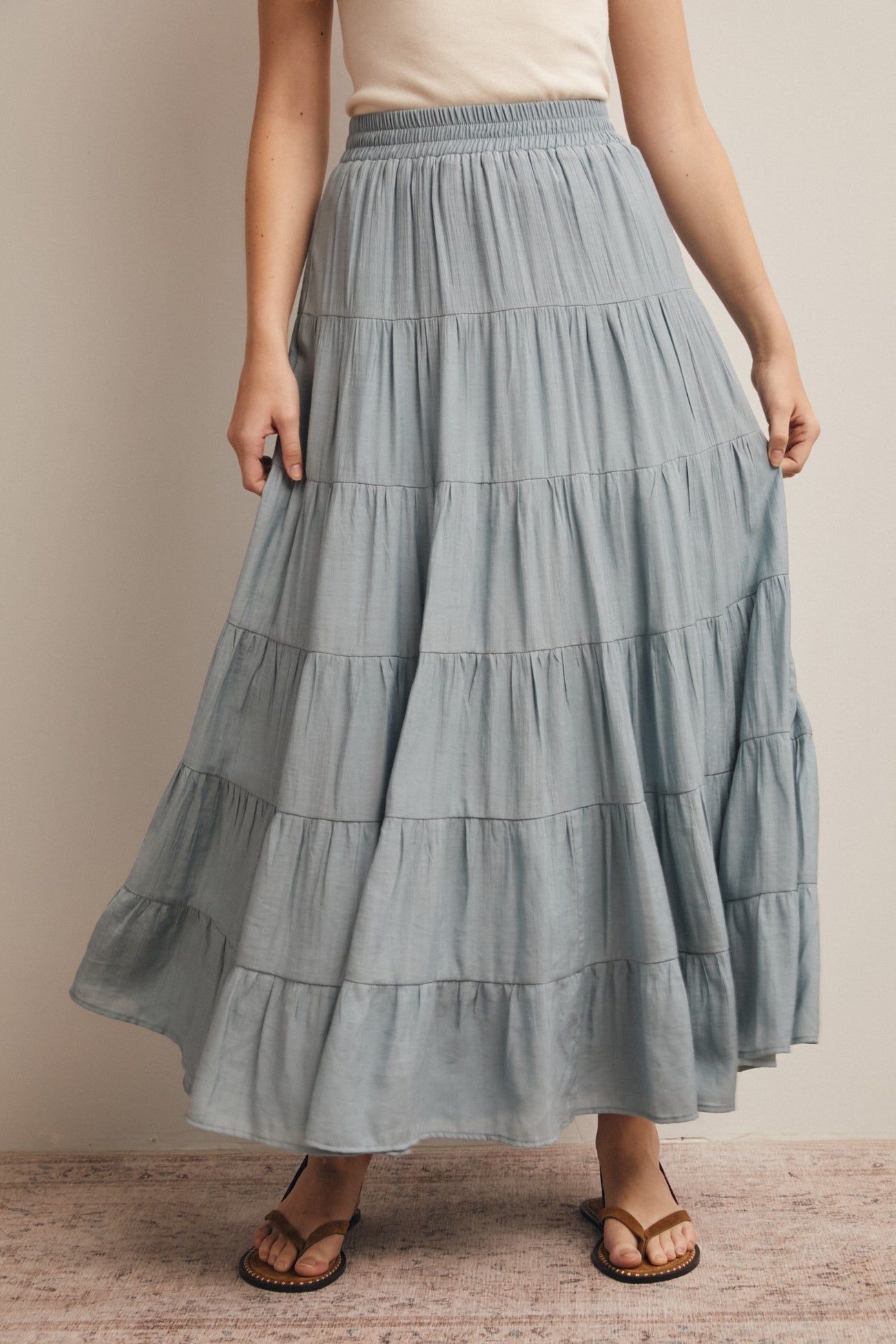Elevate your wardrobe with this effortlessly chic tiered maxi skirt. Crafted from lightweight, breathable fabric, it offers all-day comfort with a flattering, flowy silhouette. The elastic waistband ensures a perfect fit while adding versatility to your look. Featuring multiple tiers, this skirt creates graceful movement and a trendy boho vibe, perfect for casual outings or dressier occasions. Pair it with a simple tank and sandals for a relaxed day look, or dress it up with a fitted blouse and heels for an evening out. A must-have staple for easy, stylish layering in any season.