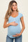 Sky Blue Jacquard Button Front Maternity Short Sleeve Top