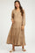 Taupe Button Front V-Neck Ruffle Tiered Maternity Midi Dress