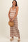 Taupe Chevron Crochet Shoulder Tie Maternity Midi Dress