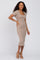 A basic fitted midi dress with a rounded neckline and short sleeves.