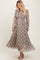 Taupe Floral Chiffon Ruffle Accent Button Down Maxi Dress