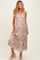 Taupe Floral Front Button Sleeveless Maternity Midi Dress