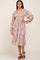 Taupe Floral Smocked Long Sleeve Midi Dress
