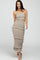 Taupe Leaf Print Smocked Fitted Midi Dress