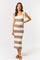 Taupe Mixed Cable Knit Colorblock Shoulder Tie Midi Dress