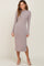 A solid hue midi dress with a mock neckline, long sleeves, and a side slit.