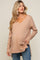 A solid long sleeve maternity knit top with a v-neckline and two side slits.