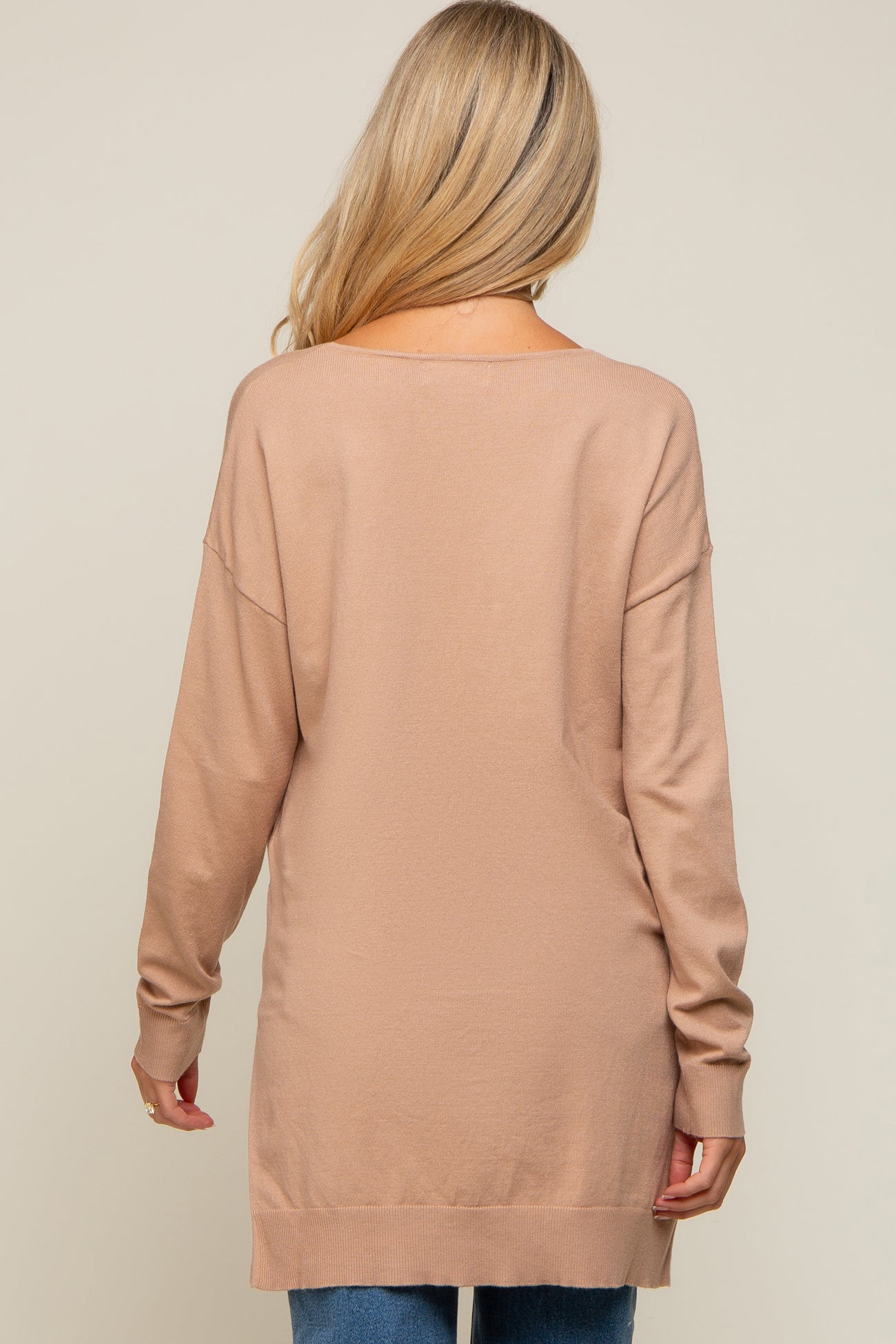 Taupe Oversized Knit Side Slit Maternity Top