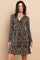 A printed dress in a lightweight pleated material with a twisted v-neckline.