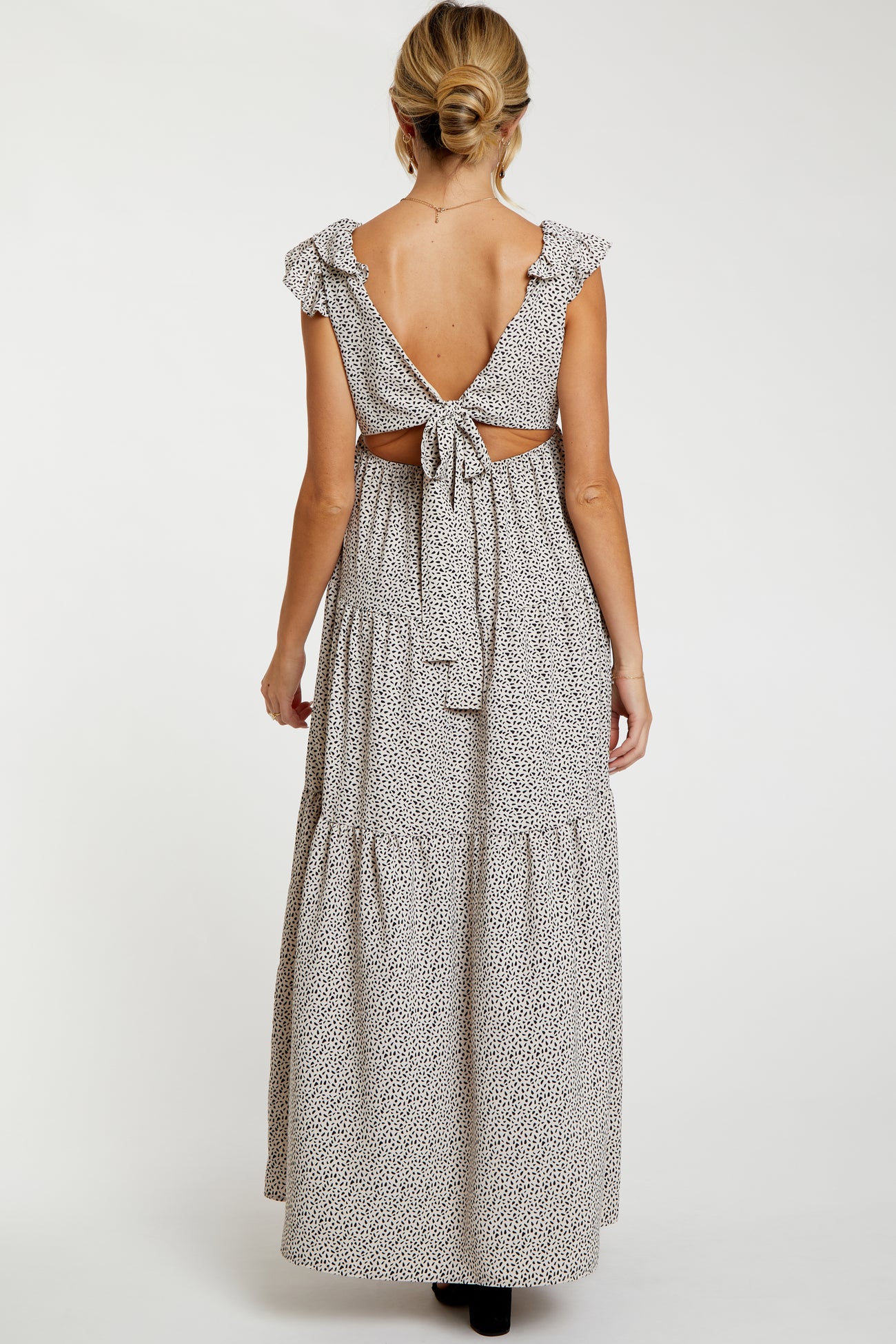 Taupe Printed Tiered Cutout Back Maternity Maxi Dress