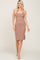 A ribbed midi dress featuring adjustable straps, a scoop neckline, a button front top, and side slits.