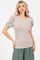 A ribbed top featuring short puff sleeves with a ruffle trim and a rounded neckline.
