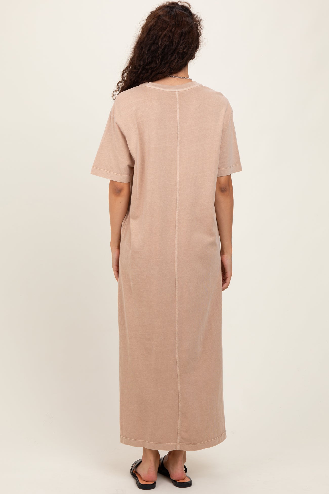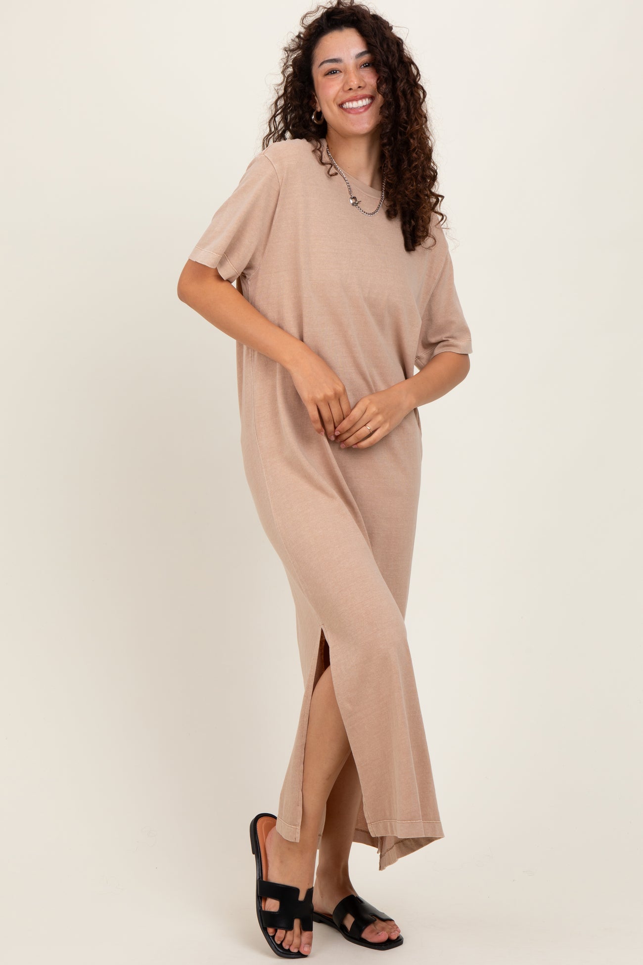 Taupe Short Sleeve Knit T-Shirt Maxi Dress