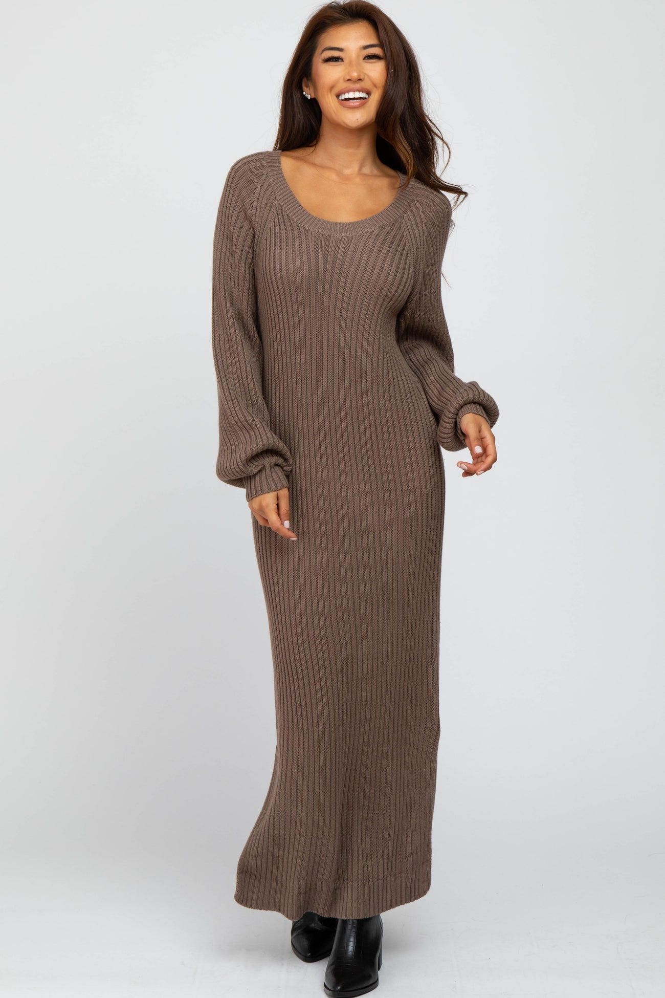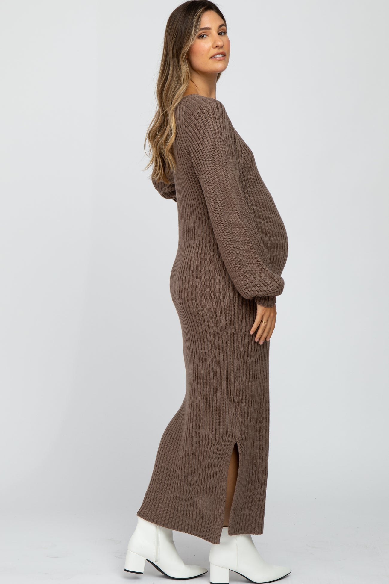 Taupe Side Slit Maternity Maxi Sweater Dress