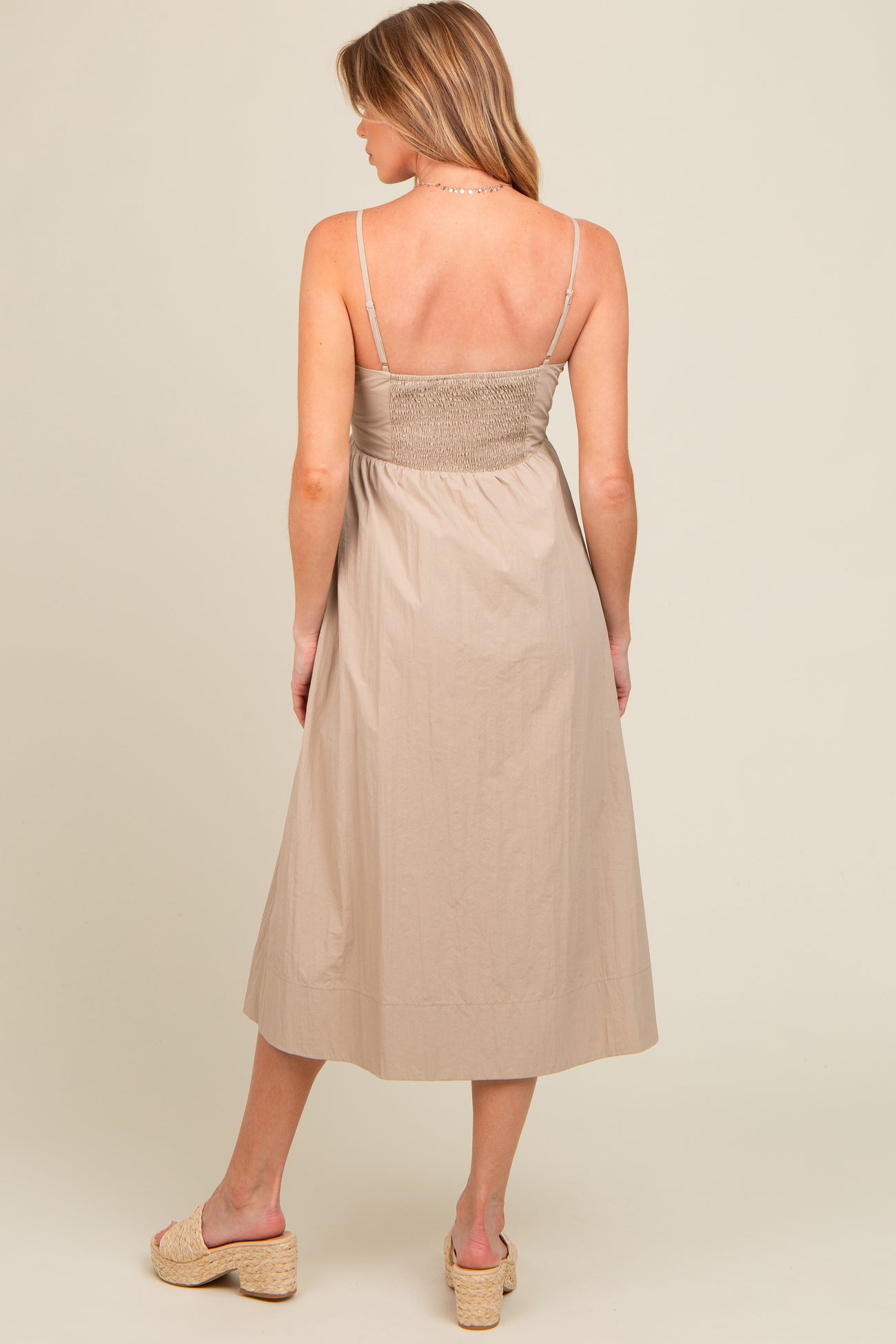 Taupe Sleeveless Button Down Maternity Midi Dress
