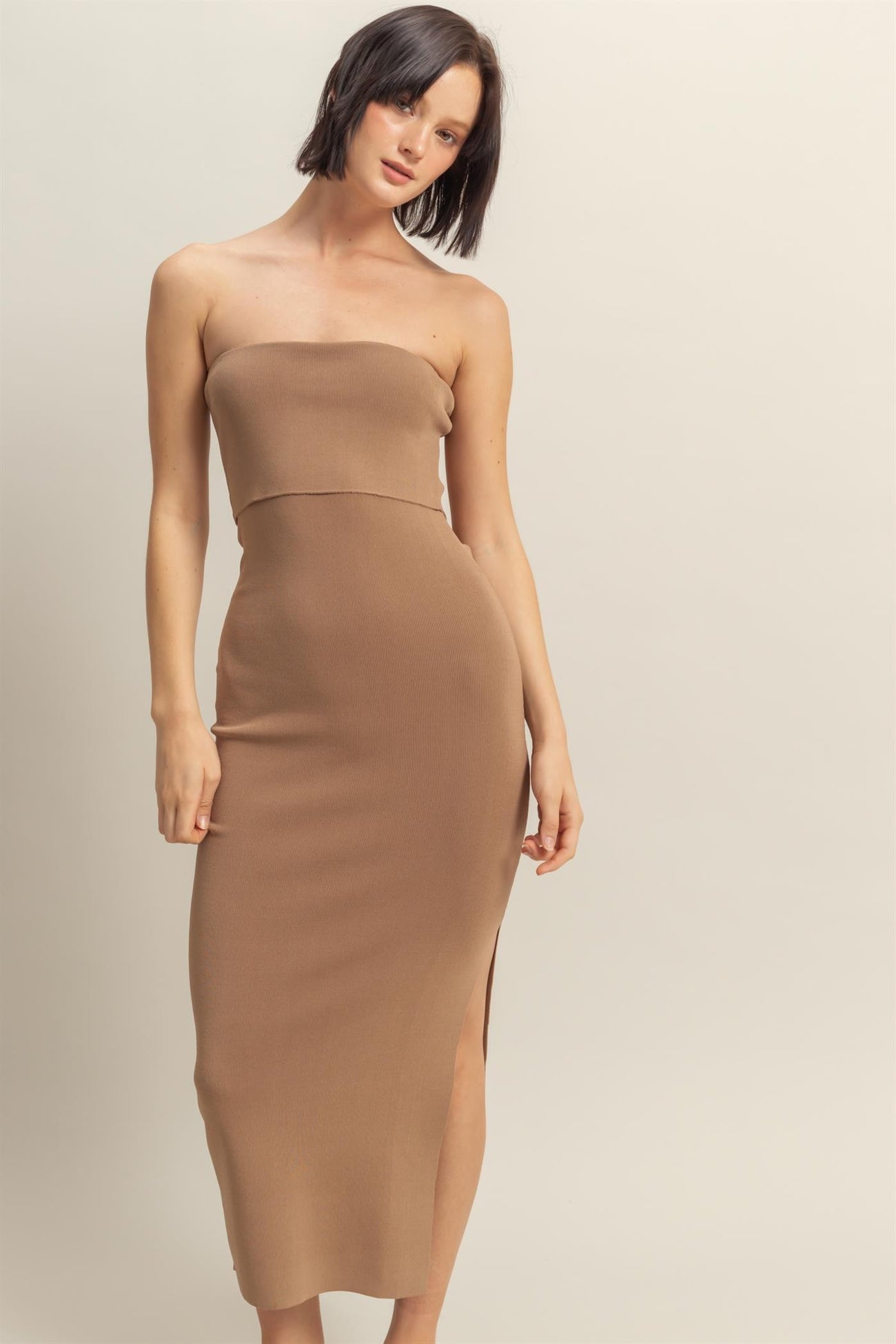 Taupe Strapless Fitted Maternity Maxi Dress