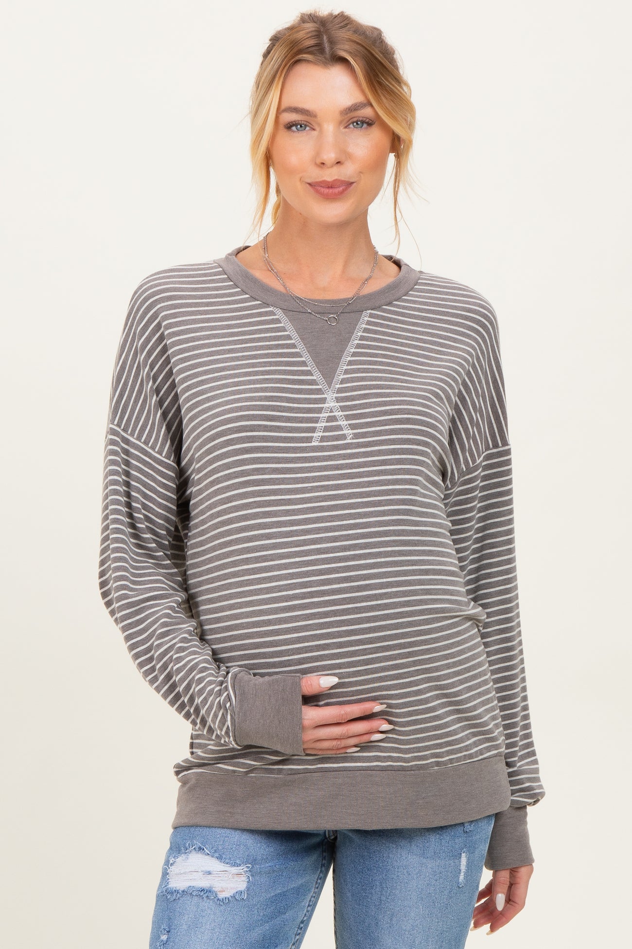 Experience ultimate comfort and style with this striped crew neck pullover maternity top. Designed with soft, breathable fabric, it gently hugs your changing shape while offering a relaxed fit for all-day wear. The classic crew neckline and long sleeves provide cozy coverage, while the subtle striped pattern adds a timeless touch to your maternity wardrobe. Perfect for layering or wearing on its own, this versatile pullover pairs effortlessly with your favorite jeans or leggings. Ideal for casual outings or lounging at home, it combines practicality and fashion for moms-to-be. Machine washable for easy care.