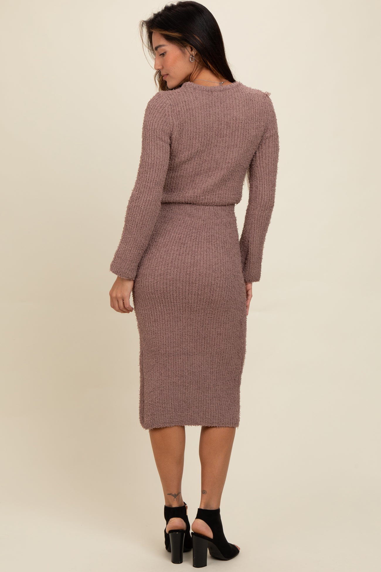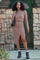 Taupe Textured Knit Long Sleeve Top and Skirt Set