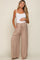 A pair of solid hued maternity pants featuring wide legs, side pockets and a drawstring ruffle waistband.