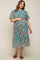 Teal Floral Pleated Maternity Plus Size Midi Dress