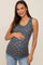 A floral sleeveless ribbed maternity top featuring front buttons and a rounded neckline.