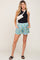 A pair of floral maternity shorts featuring an elastic waistband, side pockets, a ruffle hem and double lined.