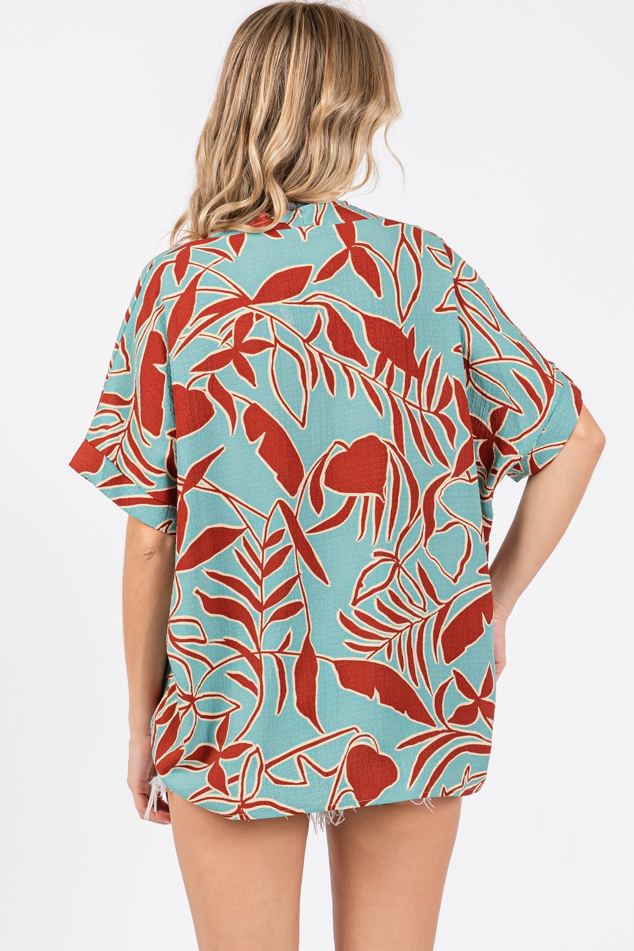 Teal Floral Short Sleeve Blouse